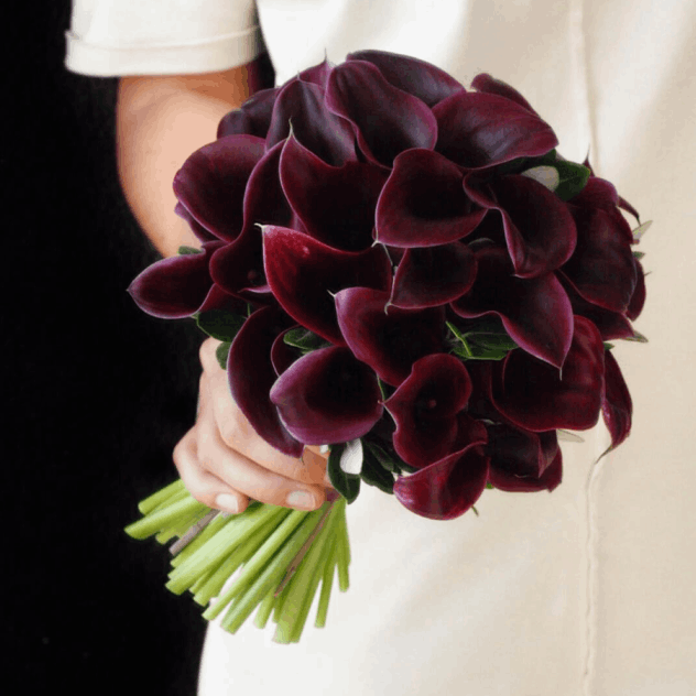 A dramatic and luxurious bouquet of deep purple orchids and burgundy calla lilies. Its sophisticated palette is perfect for making a bold, romantic statement.
